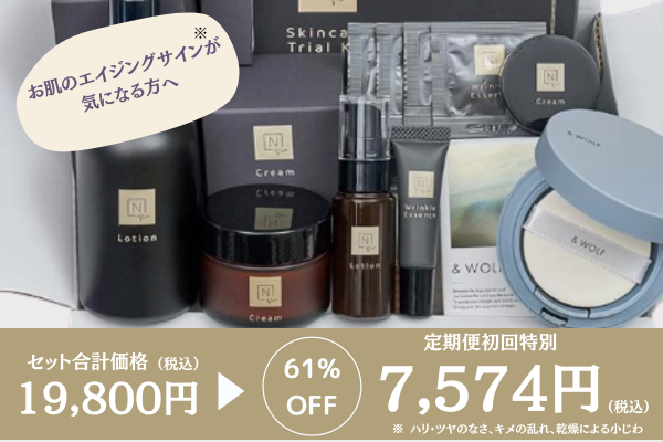 少しでもお得に購入したい方は定期分がおすすめ!たっぷり2ヶ月分のローション・クリームセットを購入できるうえ、初回特典として3つの人気アイテムが一緒に届きます。